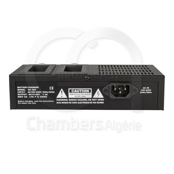 Le modèle SC-302 est un chargeur 2 canaux NP-1, pouvant identifier automatiquement les batteries à charger (Li-ion, Ni-MH et Ni-Cd).
